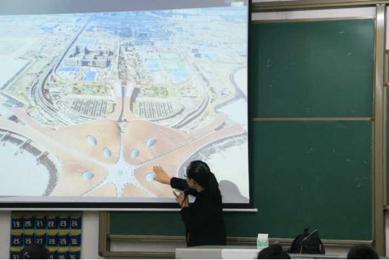 预热阶段,潘教授向同学们展示了一些国内数字建筑的代表性案例,其中着重介绍了北京大兴国际机场、上海中心大厦和重庆“朝天扬帆”地标的设计与建造。潘教授专业的讲解让同学们直观地感受到数字建筑的美好与神奇,激发了同学们进一步了解的兴趣和热情。