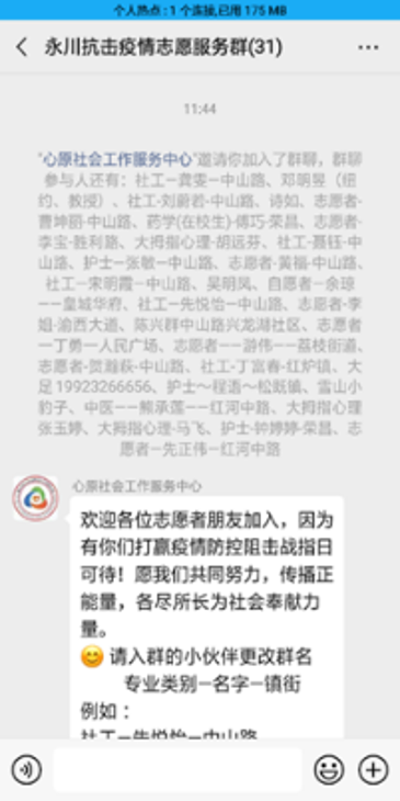 在防控疫情过程中,部分同学自学心理疏导相关技能知识,协助各地工作人员向普通民众及隔离观察群体予以关心支持、心理求助辅导,并协助宣传疫情防控工作。