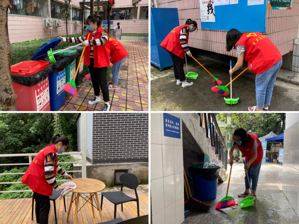 按计划,中午12:30至13:00,志愿小分队来到菁园小区,开始线下活动。志愿者们手拿抹布、扫帚等各种清洁工具,全面清理道路路面、白色垃圾、厨余垃圾等,努力清扫卫生死角、捡拾果皮纸片。本科生第七党支部党员王星尧是此次志愿活动的负责人,第一天上岗的她坦言道,“这次志愿服务给了我将为人民服务的入党誓词付诸行动的机会,让我真实感受到志愿服务的‘助人助己,乐人乐己’”。2017级工程造价专业员工党员胡艺霏谈到,“我体会到了勤于奉献的喜悦,也获得了实践知识的增长,党员的先锋模范作用和为人民服务的精神在志愿行动中彰显,这是我们当代老员工应有的担当和精神。”