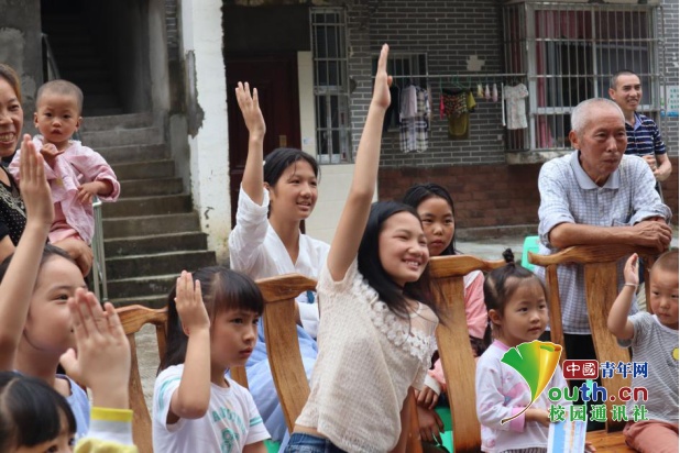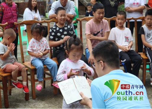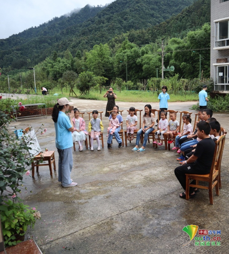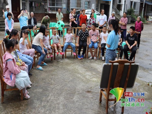 实践队队员陈微微在为小朋友们讲解野生动物保护法。中国青年网通讯员 陈烨 摄