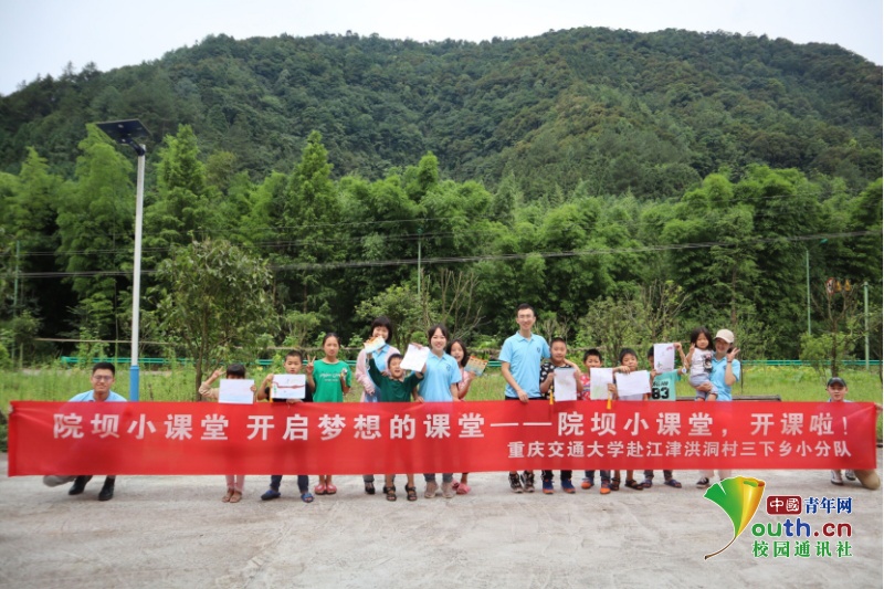 实践队队员们在课堂结束后与小朋友们的合影。中国青年网通讯员 陈烨 摄