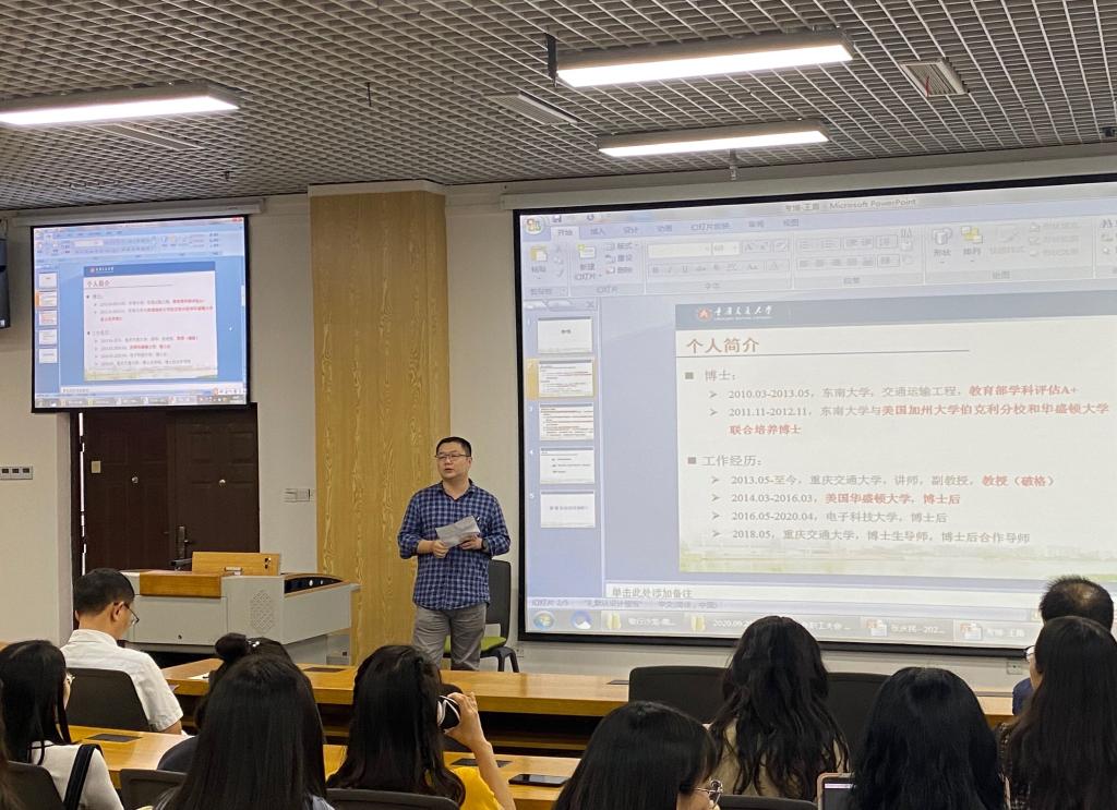 关于考博和求职面试技巧的相关问题,博士生导师王勇和辅导员石文桂也给出了精准解答。王勇教授从“为什么要考博、考博的过程、考博之后的学习任务”三个方面入手,让同学们对考博的意义有了深入的了解。石文桂老师详细介绍了求职面试中的基本礼仪、半结构化面试、无领导小组面试等相关内容。