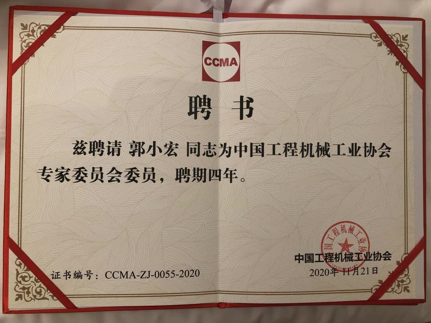 郭小宏教授被聘为中国工程机械工业协会专家委员会委员