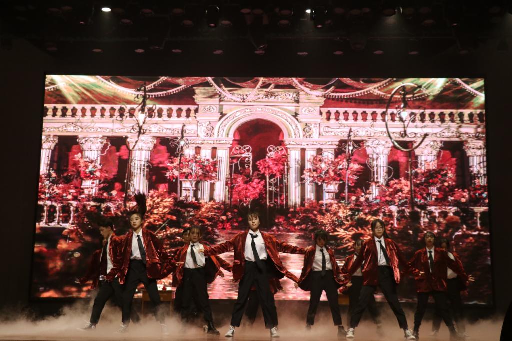 本次晚会分为“金鳞筑梦”、“鸿鹄涵志”、“琼蕴青春”三个篇章。晚会开场别出心裁,模拟真实防疫入场流程,以生动有趣的方式提醒同学们佩戴口罩,遵循会场秩序。音乐响起,一支充满激情的《up grade》电竞街舞拉开晚会帷幕,瞬间点燃全场气氛。