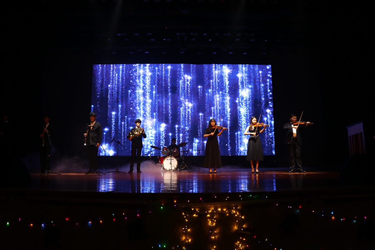“国是最小家,家是最小国”,大合唱《国家》用浑厚圆润的腔调和形象的手语,歌颂了祖国风采,唱出了对祖国深沉的爱,表达了经管学子的拳拳爱国心。“青山一道同云雨,明月何时照两地”,情景朗诵《平凡英雄》从孩子,医生,军人的角度,以小见大,赞颂了在抗击疫情中每位逆行者,深情流露的朗诵使得在场观众对平凡英雄肃然起敬。器乐合奏《出埃及记》用音乐带我们领略异国风光,现代舞《不想说再见》中一个个白衣精灵以曼妙的舞姿在台上翩翩起舞,台下观众也沉醉在舞池中,静享舒缓安适。