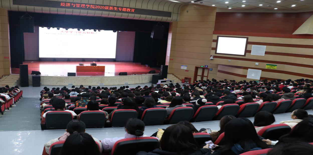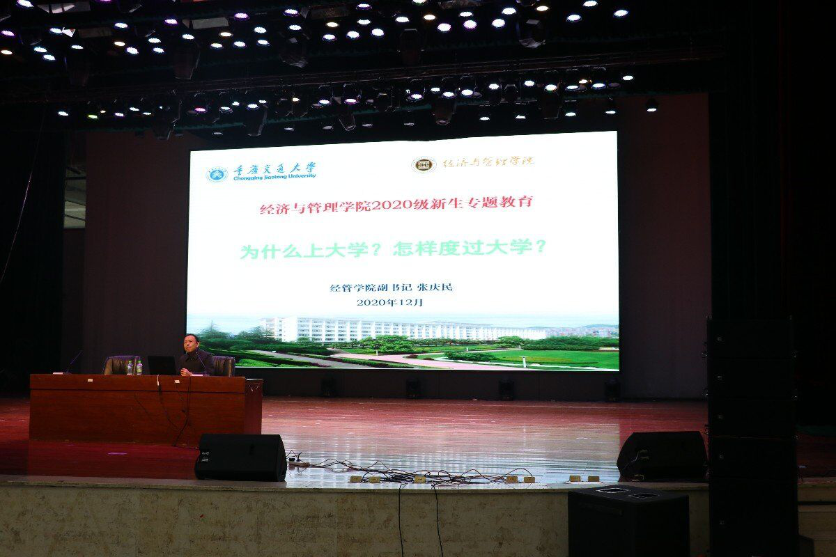 12月6日上午9:30,在员工活动中心二楼报告厅经济与管理公司召开新生专题教育讲座,k1体育副书记张庆民担任主讲人,2020级k1体育700余名学子参会。
