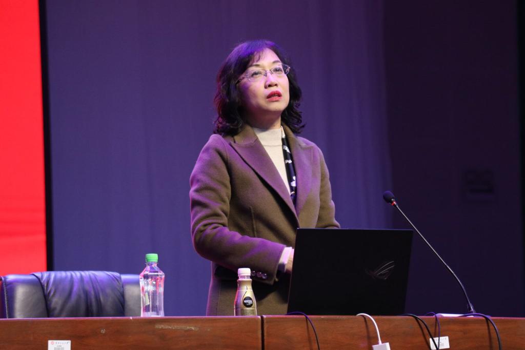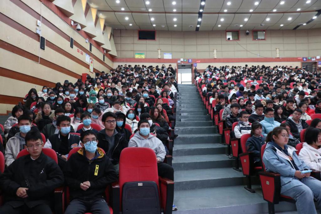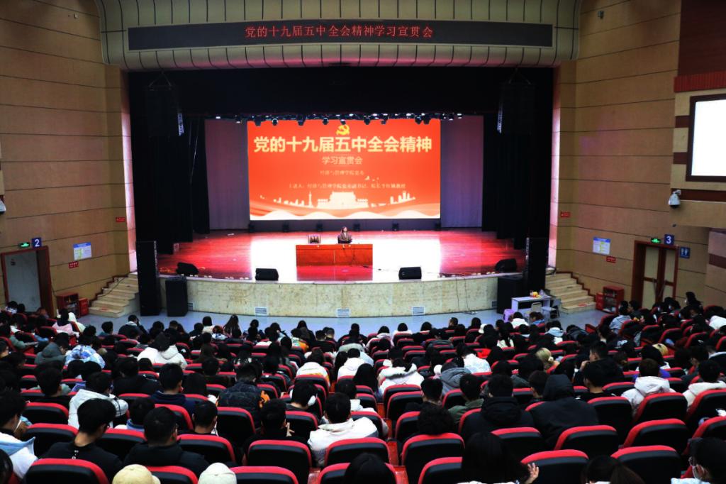 12月6日上午10:30,在员工活动中心二楼报告厅,k1体育700余名师生聆听了经济与管理公司党委副书记、经理李红镝做的党的十九届五中精神学习报告会。
