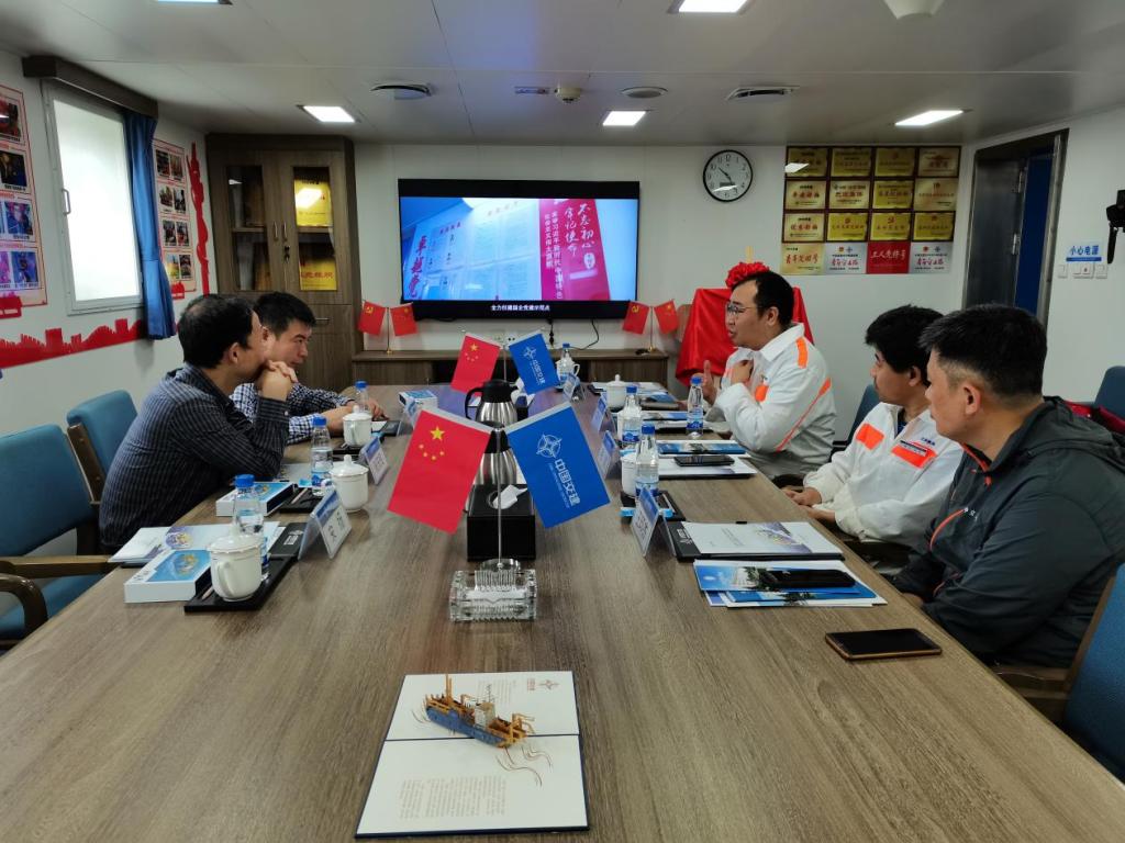 钦州港东航道扩建工程项目书记王印杰、天鲲号政委兼党支部书记霍宗杰、船长张燚、轮机长王志军,公司党委及本科生第三党支部有关负责人张庆民、张韩笑、宋扬等参加交流会。
