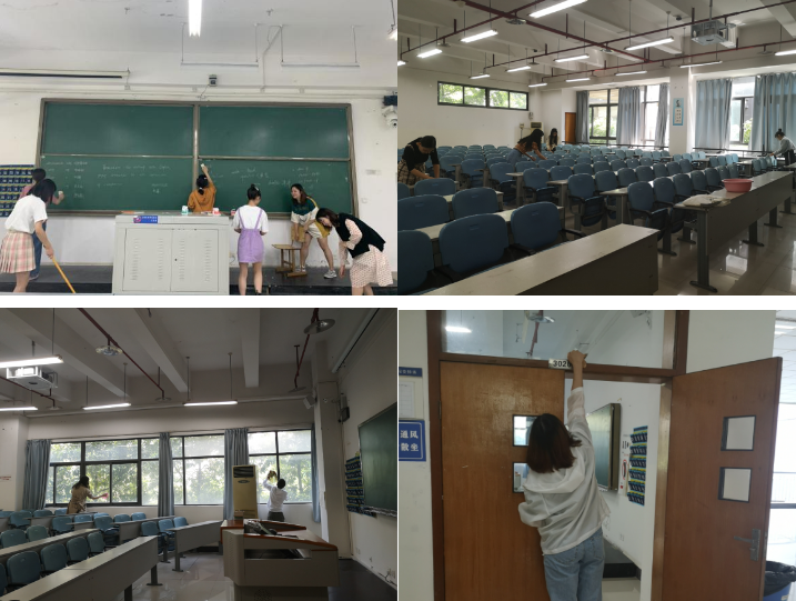 彭义雯老师、宋扬老师阐述了本次实践活动的重要意义、活动流程、注意事项。随后,同学们以小组为单位,分别深入到南岸校区第三教学楼、科学城校区A01教学楼全面清洁教室。打扫地面、清扫讲台粉尘、清理窗台、擦黑板、擦课桌......清洁工作有序进行着。