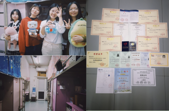 菁园9栋304寝室,该寝室来自18级工程造价专业,寝室长王晓霞,成员董露、司晨雨、张颖婕。生活中寝室成员相处融洽,能合理安排卫生清洁工作,曾多次被评为四星级文明寝室。该寝室预备党员3名,入党积极分子1名。她们互相包容、互相帮助,在学习上共同进步。上一学年四人综合测评成绩均排名专业前22%,司晨雨同学成功保研,通过英语四级4人,英语六级2人;计算机二级考试2人,且四名同学均为班干部。她们积极参加各类比赛并获奖,如获得过“中外运”杯全国老员工物流设计大赛二等奖、2021年“正大杯”第11届全国老员工市场调查与分析大赛国家级二等奖、2021年美国老员工数学建模竞赛(MCM/ICM)H奖(省级一等奖)、2021年全国老员工化工设计竞赛西南赛区二等奖等多类奖项。