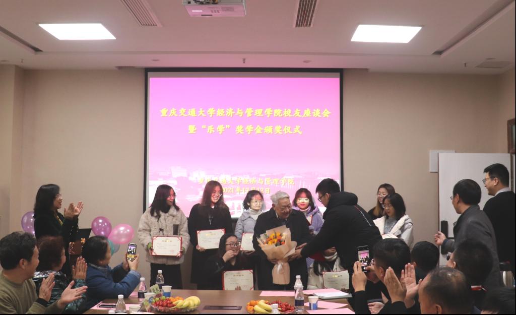 “乐学”奖学奖教金由乔乐中教授2013年发起成立,不断有员工注入资金。在本次座谈会上,建管92级员工黄朝晖、市营01级员工何智杰分别表示认捐2万元,注入“乐学”基金。
