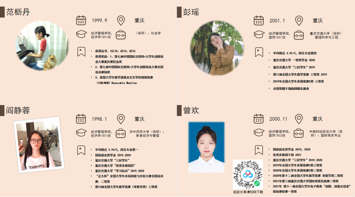 岳天老师介绍了本次座谈会的18级学长的基本信息,在11月结束的全国本科生推免中,范枥丹、彭瑶、阎静蓉、曾欢四位同学顺利完成保研。