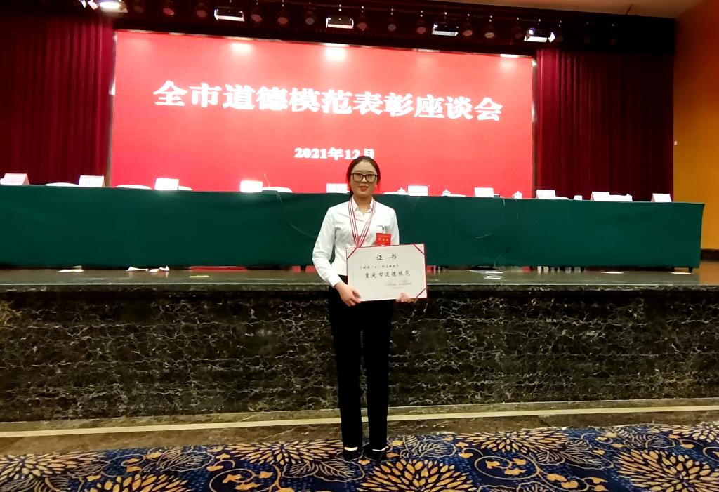 在2021年12月17日重庆市道德模范表彰座谈会上,k1体育2019级会计学专业员工、中共党员于婷婷荣获“重庆市道德模范”称号。