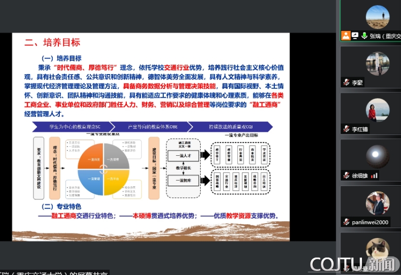 培养方案专家评审环节,与会专家结合专业发展趋势和企业人才需求,对专业简介、培养目标、毕业要求、交叉学科、课程体系等进行了细致讨论,提出了强化创新创业实践、增加课程案例开发和培养员工项目管理思维等具体意见。评审专家组充分肯定了工商管理专业“融工通商”的特色,一致认为培养方案满足国家质量标准和新文科建设要求,同意2022版本科人才培养方案通过评审。