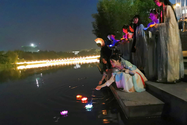 在公司的李子湖边,师生将自己手绘的荷灯放置水中,任荷灯随波漂流,寓意寄托思念和祝福。他们还通过拆解、组装榫卯,拼接出精致的宝塔、房屋等古建筑,深刻感受古人们的智慧与工艺技术。