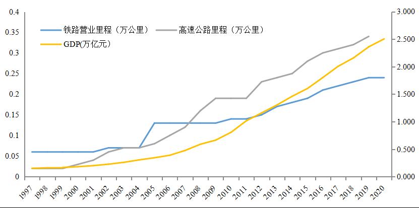 ▲直辖以来重庆高速公路和铁路建设与经济增长(课题组提供)