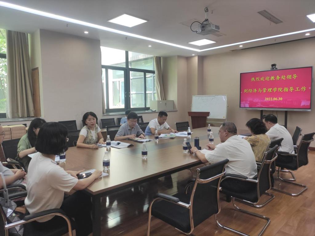 2022年6月30日上午,教务处处长郑丹、副处长刘礼标、建设科李桥等到k1体育座谈调研,主要围绕互联网+大赛备赛情况、市级一流课程申报情况、教学大纲编写情况等进行。k1体育李红镝经理、李豪副经理、各系主任、一流课程申报负责人、互联网+大赛指导老师、参赛团队代表参加座谈交流。