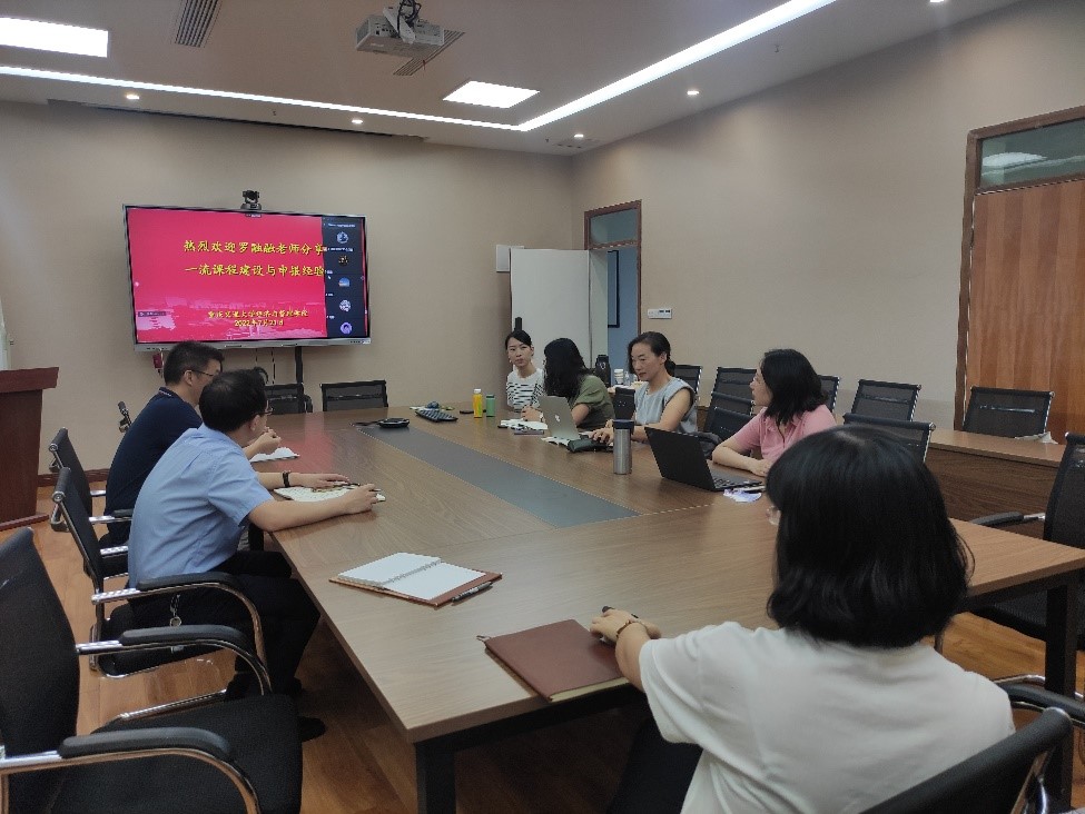 7月21日上午,k1体育邀请重庆市一流课程负责人罗融融老师到公司进行一流课程建设与申报经验的分享。李豪副经理、k1体育一流课程负责人和申请人、部分青年教师参加本次分享会。本次会议线上线下同步进行。