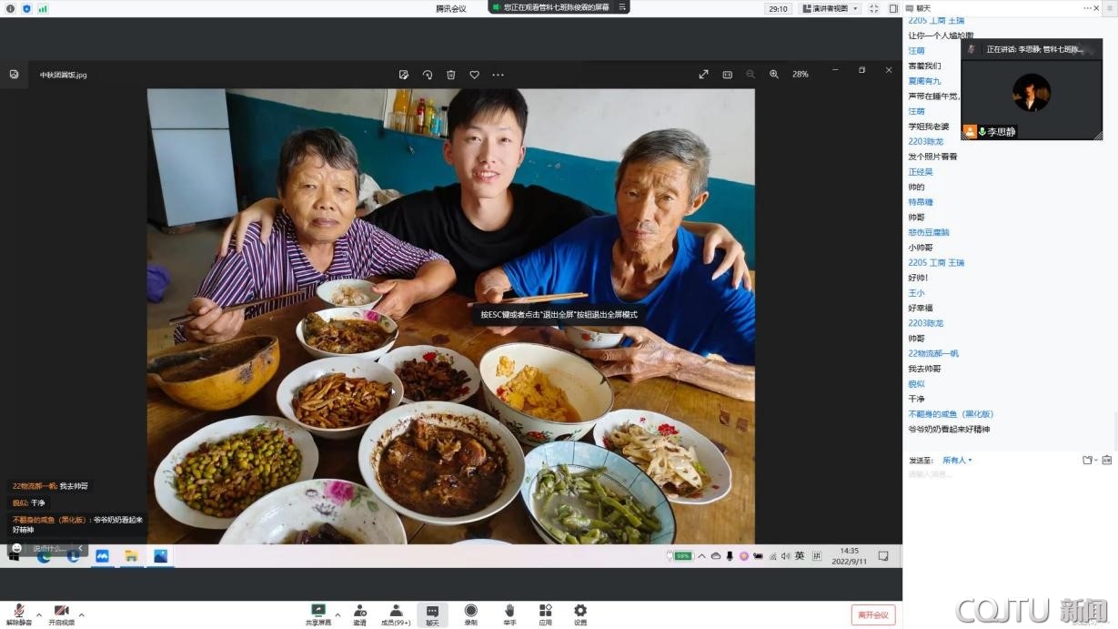“海上生明月,天涯共此时”。在本次活动临近尾声时,同学们一起观看了经管员工会精心制作的视频。这些视频呈现了人们对中秋的理解和传统习俗的传承,收集了学子们中秋团圆饭的温馨场面。每一帧都展现“但愿人长久,千里共婵娟”的美好祝愿。