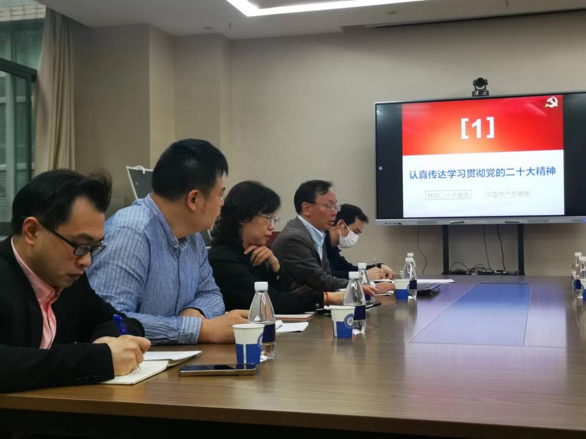10月28日公司党委书记魏铜铃领学了党的二十大报告主要精神,传达了公司党委学习贯彻党的二十大精神有关会议和讲话精神,强调要原原本本学习习近平总书记报告原文,深刻领会党的二十大精神实质,切实提高学习贯彻党的二十大精神的政治自觉、思想自觉和行动自觉;要结合院系办学育人实际学,落实好立德树人根本任务,让党的二十大精神进教材、进课堂、进师生头脑,引领带动公司事业高质量发展;要结合落实新时代党的建设总要求学,认真落实全面从严治党要求,充分发挥党支部战斗堡垒作用和党员先锋模范作用,奋进现代化新征程,勇担复兴使命。