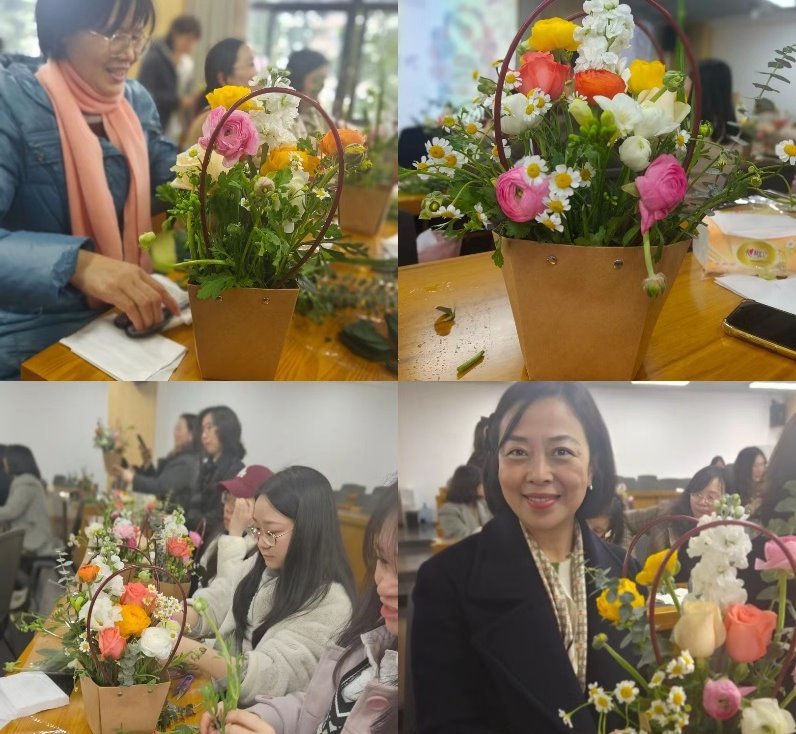 经过一番努力,每位老师都收获了一束极具个人特色的鲜花,这些美丽的花束不仅为节日增添了浓厚的氛围,也传递了对妇女们的祝福和敬意。此次妇女节插花活动不仅让大家度过了一个愉快而有意义的节日,还增进了女性教职工之间的交流、陶冶了情操、增强了凝聚力,还让大家放松心情,提升了艺术审美情趣。