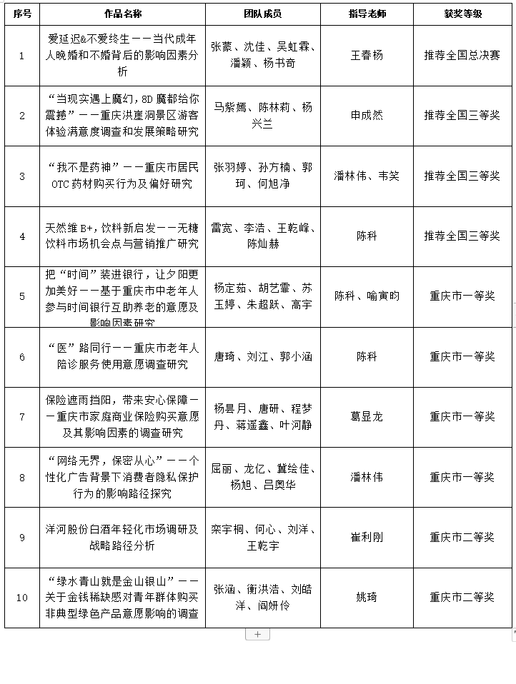 全国老员工市场调查与分析大赛是政府支持、企业认可、高校师生积极参与、海峡两岸高度联动的统计学科实践教学平台赛事,为高校学科竞赛排行榜竞赛项目。2024年第14届全国老员工市场调查与分析大赛研究生组重庆赛区有53支队伍入选省赛。经过五位专家评审,来自重庆大学、重庆师范大学、k1体育十年品牌、重庆工商大学、重庆三峡公司、重庆科技大学等高校的15支队伍参加这次赛区现场答辩赛,最终有5支队伍推荐全国总决赛。