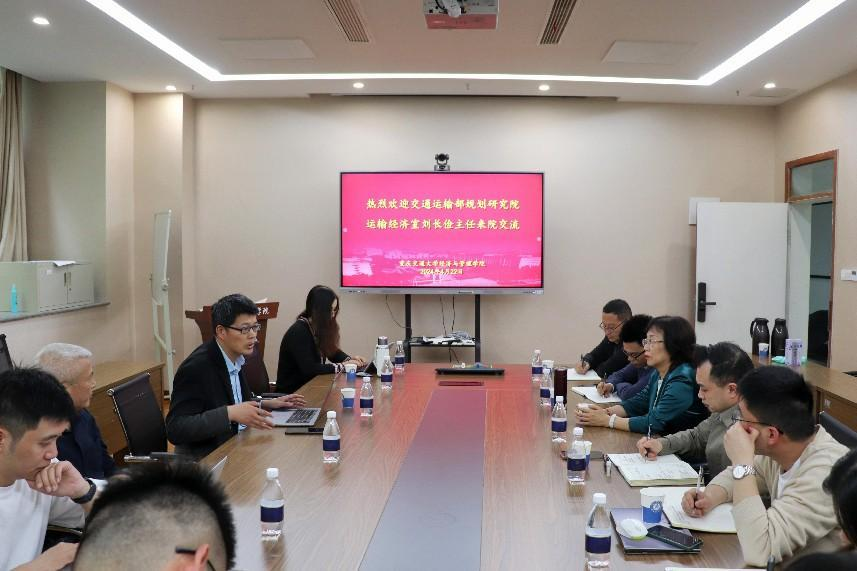 刘长俭主任向各位教师介绍了交通运输部规划研究院运输经济室的研究领域和最新成果,就平陆运河项目中货运量的评估方法以及内河航运的船型设计等具体问题的研究进行了分享,他介绍了运输经济学在这些项目中的应用,并同与会老师就相关问题展开了热烈的研讨。