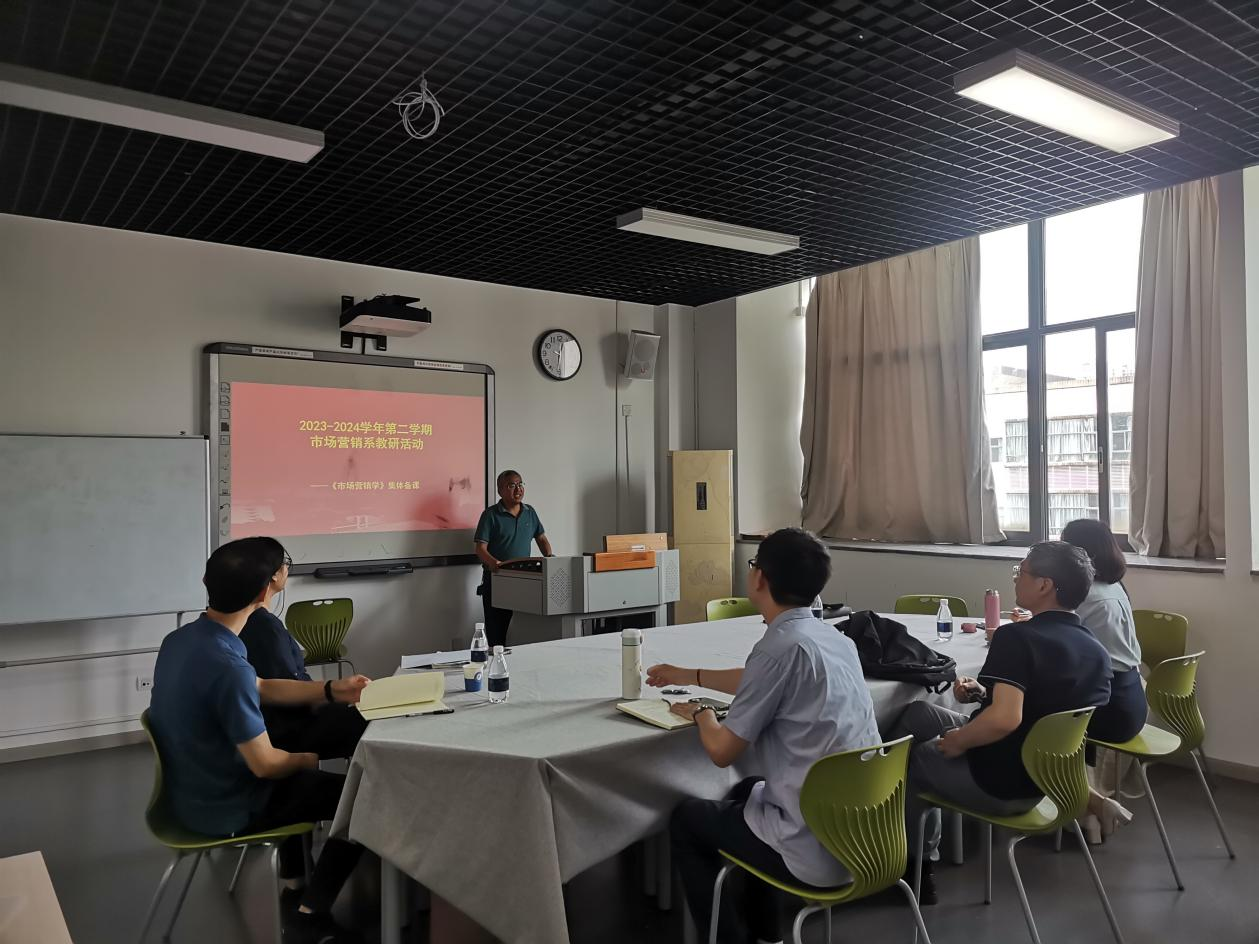 各教研室前期都进行了充分准备,确定主备教师和备课主题,通过个人初备、主备人发言、集体研讨、交流反思、总结点评等环节,组织教师开展备教材、备大纲、备教法、备学法、备重难点、备作业布置等系列活动。如市场营销系提前确定由易世志担任主备教师,备课主题是“《市场营销学》课程思政与项目式教学设计”,易世志详细讲解了《市场营销学》课程思政与项目式教学设计的总体思路,以及如何围绕总体思路进行课程内容与资源的重建,如何构建课程思政育人案例库,如何将学科竞赛项目引入课程,实现课程思政案例、项目式教学与课程内容的有机融合。之后,参加集体备课的老师围绕备课主题,结合自身授课和备课的经验,从大纲、教材、教法、重难点、项目式教学、课程思政融入等多方面展开讨论,积极建言献策,对进一步优化课程思政案例库建设、拍摄课程思政案例微视频、项目式教学效果提升等方面提供了建设性意见。